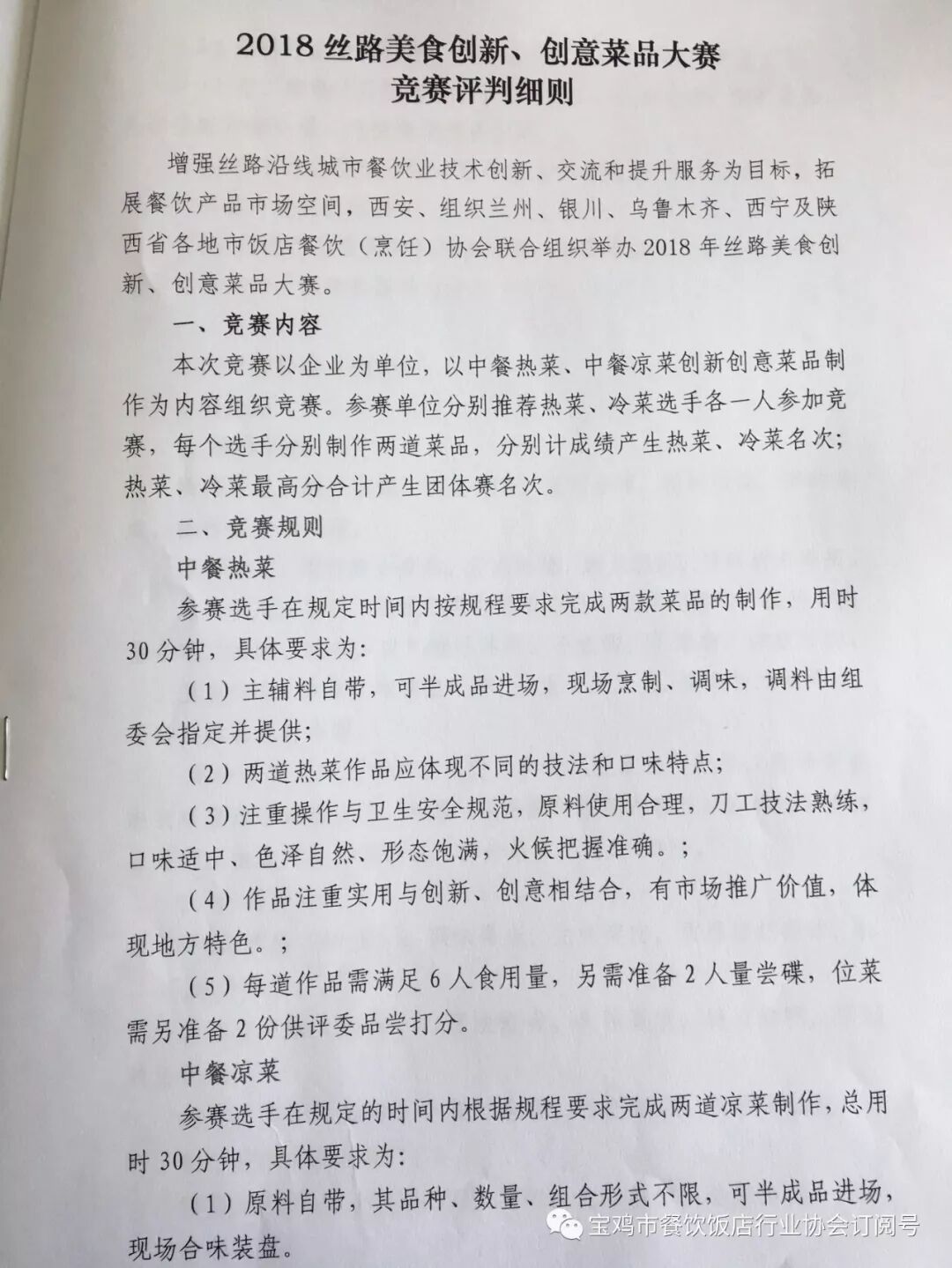 2018丝路美食创新、创意菜品大赛竞赛评判细则。
