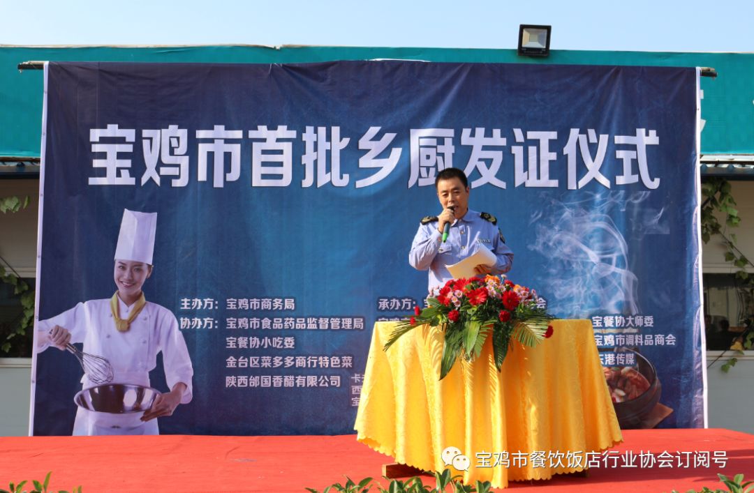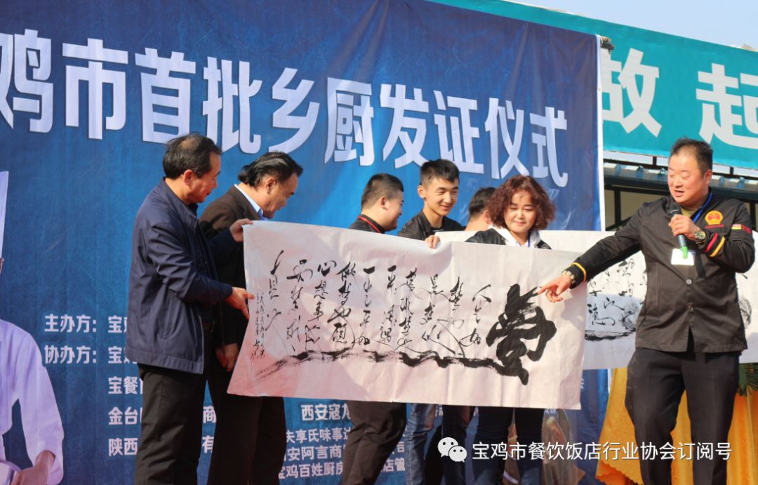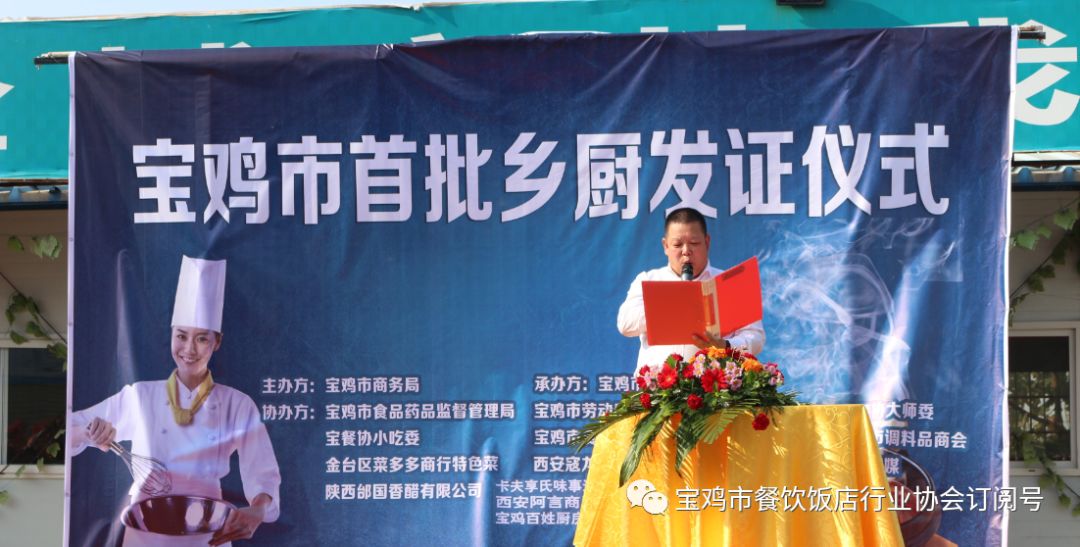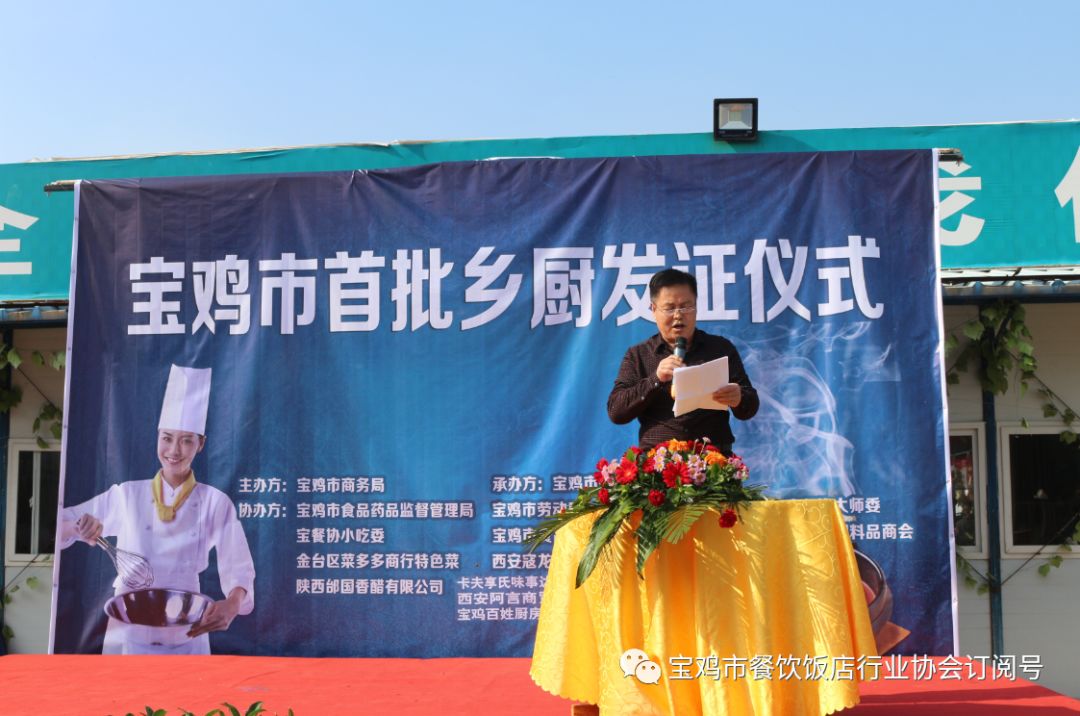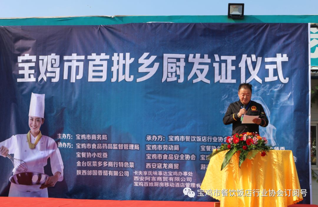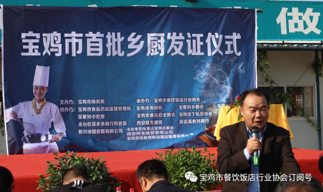 今天宝鸡市首批乡厨发证仪式具有里程碑的意义。乡厨专委会将在宝鸡市餐饮饭店行业协会的领导下,本着“民主、自律、自治、团结”的宗旨,切实为各位委员服务好,落实好乡镇宴席的食品安全。