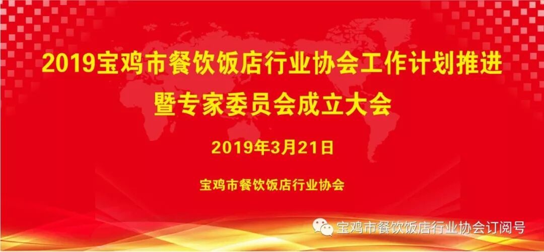 3月21日,“2019宝鸡市餐饮饭店行业协会工作计划推进暨专家委员会成立大会”在宝鸡宴会中心隆重召开!