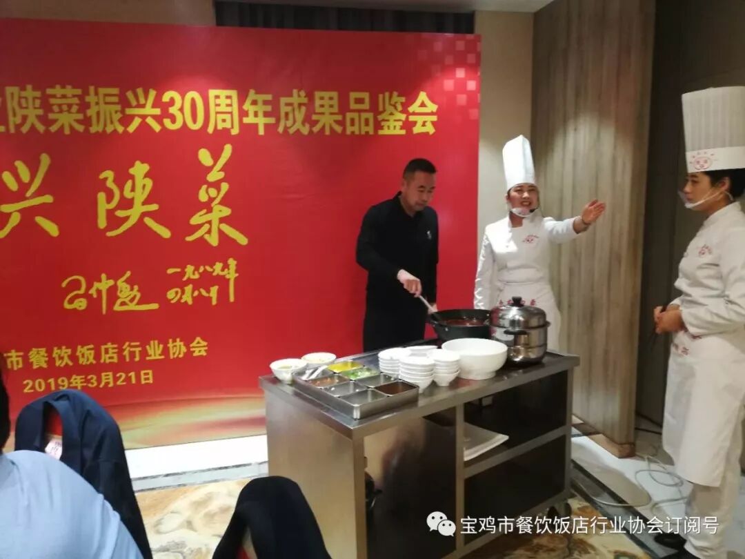 会议结束后,又举行了“2019宝鸡市餐饮行业陕菜振兴30周年成果品鉴会”,在中国红色调的陪衬下大家纷纷参与品鉴,餐桌上的西府菜品,历经30年的变化,由浓郁重油渐变为清淡爽口,由大鱼大肉渐变为荤素搭配,由盘大量大渐变为精美养眼,这说明了我们餐饮人在新时代的今天具有创新意识和工匠精神。