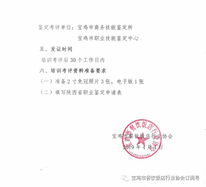 鉴定考评单位:宝鸡市商务技能鉴定所、宝鸡市职业技能鉴定中心