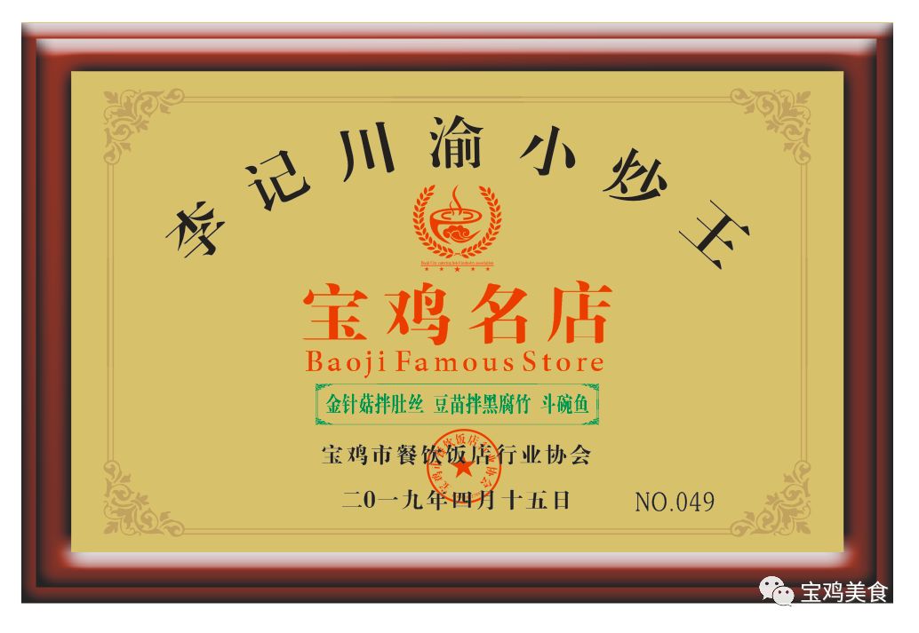 2019年4月12日下午,宝鸡市餐饮饭店行业协会对“李记川渝小炒王”进行“宝鸡名店”餐饮品牌评审认定。
