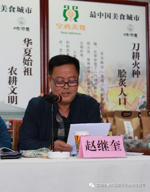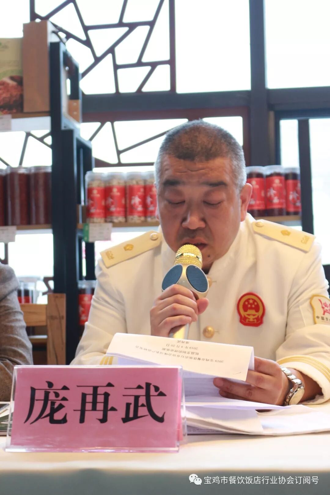 宝鸡市餐饮饭店行业协会党支部书记赵继奎宣读“中国烹饪大师”产品研发要求