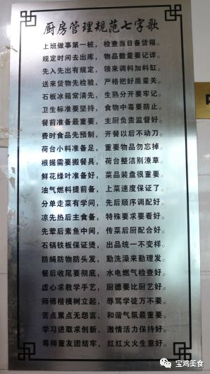 热情好客的酒店总厨曾辉还带我参观了他们的后厨。一进门,突出醒目的“团队宣言”,优秀团队“十字诀”令人对这个餐饮服务团队肃然起敬。操作间白墙上,镶嵌着“饭菜不熟不传、餐具破损不传、菜品量少不传、点缀不好不传、不带配料不传”等“十不传”标准。“食品安全是餐饮行业的生命线。”曾辉告诉我:爱姆大酒店每一道菜品上盘之前,都要经过严格的“出品检验”。这些团队作风理念、操作规定不仅仅是挂在墙上,而是体现于每一个细节、落实到了每一个人员的行动之中。“我们的目标是:不断创新,做大做强,使爱姆成为宝鸡独具特色的精品酒店!”