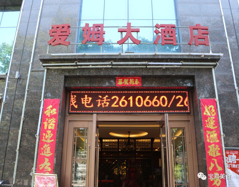 2019年5月17日,宝鸡市餐饮饭店行业协会对“宝鸡爱姆大酒店”进行“宝鸡餐饮名店”品牌评审认定。
