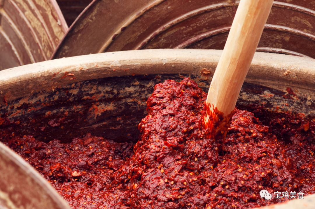 缸里的半缸辣酱正在发酵,每到冬季,都要半年左右才能发好。上乘的质量,独特的渗香工艺,保留了宝鸡辣椒的固有品质,不断延伸,已将产品远销北京、上海、大连、深圳等十几个城市,获得了良好的声誉和社会口碑。
