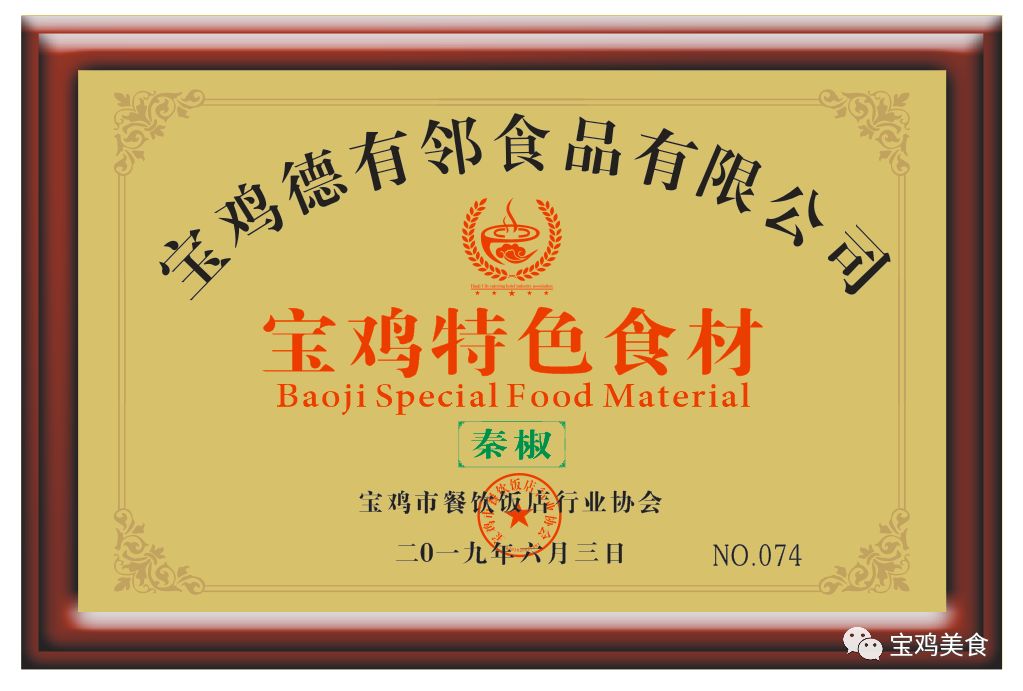 2019年5月28日,宝鸡市餐饮饭店行业协会对“宝鸡德有邻食品有限公司”进行“宝鸡特色食材(秦椒)”品牌评审认定。