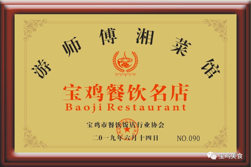 2019年6月12日,宝鸡市餐饮饭店行业协会对“游师傅湘菜馆”进行“宝鸡餐饮名店”品牌评审认定。