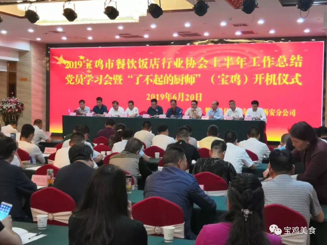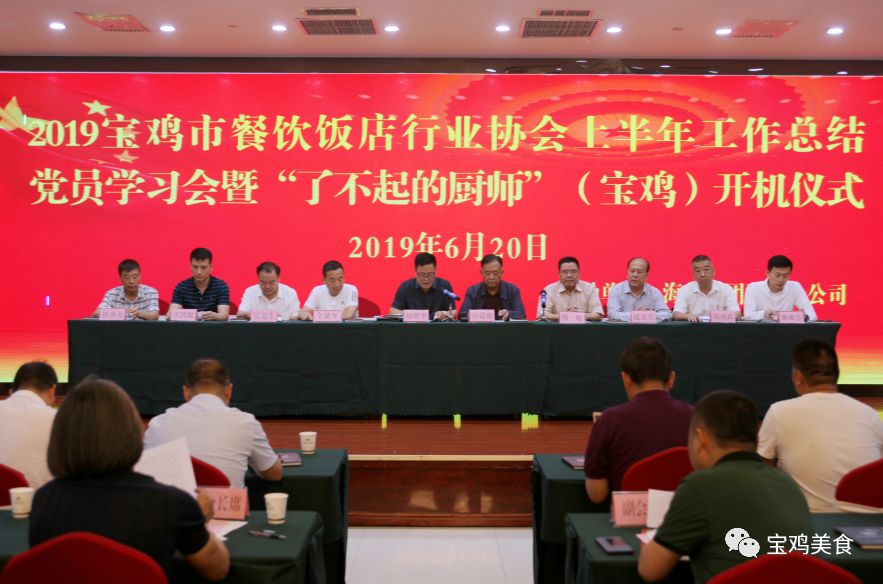 六月的天,荷风送香。6月20日下午,宝鸡餐饮人欢聚一堂,于华旗国际酒店三楼参加“2019宝鸡市餐饮饭店行业协会上半年工作总结、党员学习会暨‘了不起的厨师’(宝鸡)开机仪式”会议。