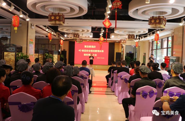 市餐饮饭店行业协会领导和中成伟业高老师为富品香酒店颁发“食安中国—4D食品安全现场管理示范企业”牌匾。