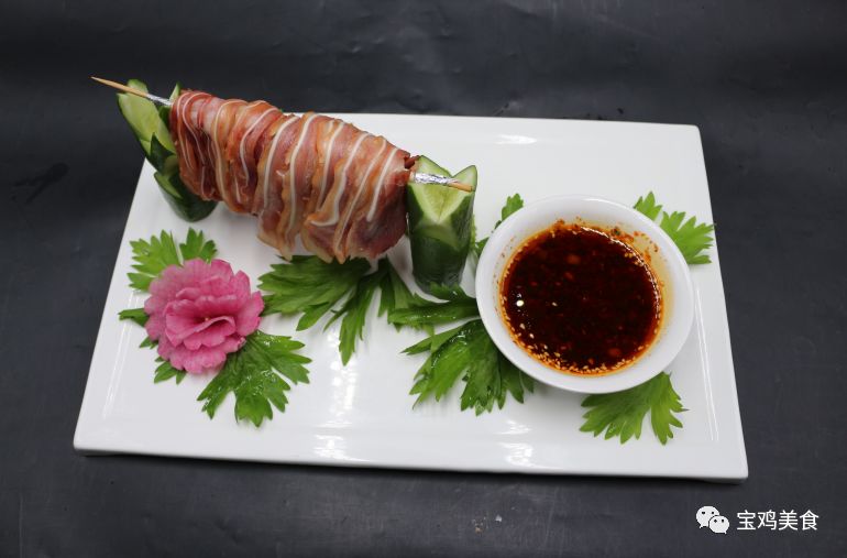功夫耳片:两根翠绿的黄瓜被切成竹桩模样,竖在盘子两端,一根长长的细棍搭在两端,上面挑起层层叠叠“薄的像纸一样”的鲜猪耳片,盘子一侧放有小碗蘸汁。这道菜最重要的是创意好,当薄薄的猪耳片遇上酸辣味的蘸汁,味道超美。用“功夫”二字形容它的薄、亮、透简直没有一点夸张。