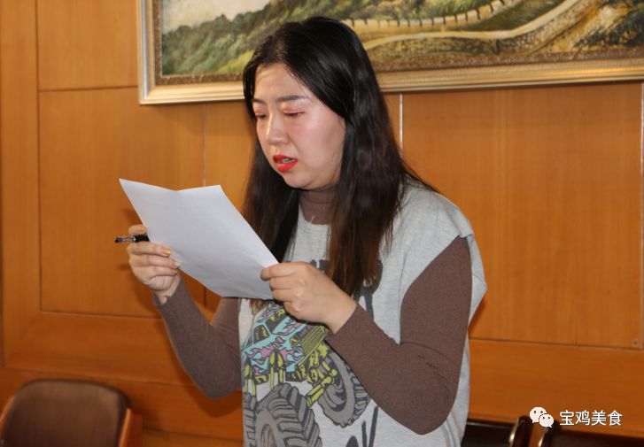 协会会员部部长王蓉带领大家学习关于2019宝餐饭协“宝鸡菜”新品研发成果品鉴会及产业化推动研讨会方案。