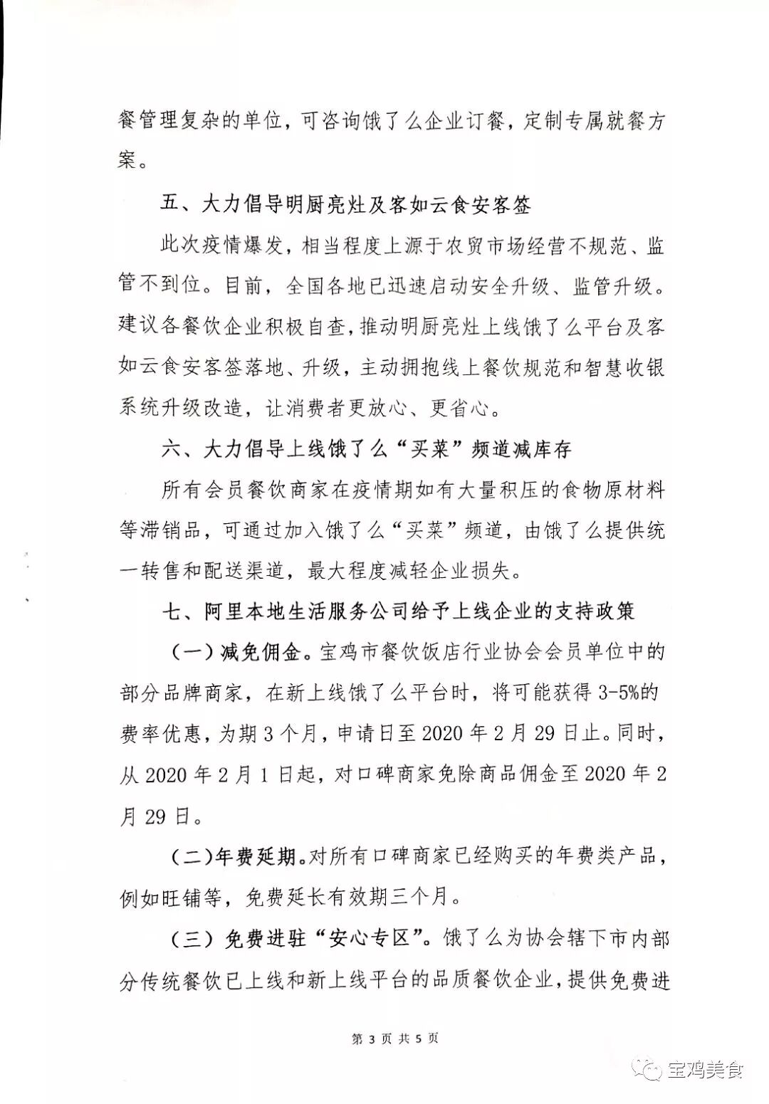 (一)减免佣金。宝鸡市餐饮饭店行业协会会员单位中的部分品牌商家,在新上线饿了么平台时,将可能获得3-5%的费率优惠,为期3个月,申请日至2020年2月29日止。同时,从2020年2月1日起,对口碑商家免除商品佣金至2020年2月29日。