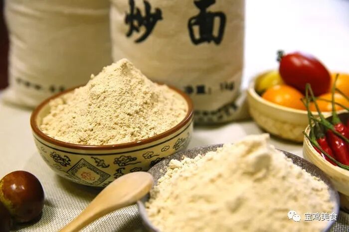 石磨和碓的发明和使用,使粮食的加工精细,舂皮的“粒食”,磨粉的“粉食”,使主食制作方法和品种增多。大别之有饼、饭、粥三种。“饼”在制作上有以下三法:一是蒸。用水掺和面,不经发酵,捏成饼状,放入釜甑中蒸熟而成的饼。二是煮。将和面捏成的饼状切片,用水煮熟,称“汤饼”。这就是最早的“面条”。今之西府面条的前身。三是烤。将和面捏成的饼,放在饼炉烤熟,因饼上有“胡麻着上”,故有“胡饼”之名。城镇集市有“饼铺作坊”,如今之“烧饼店铺”。