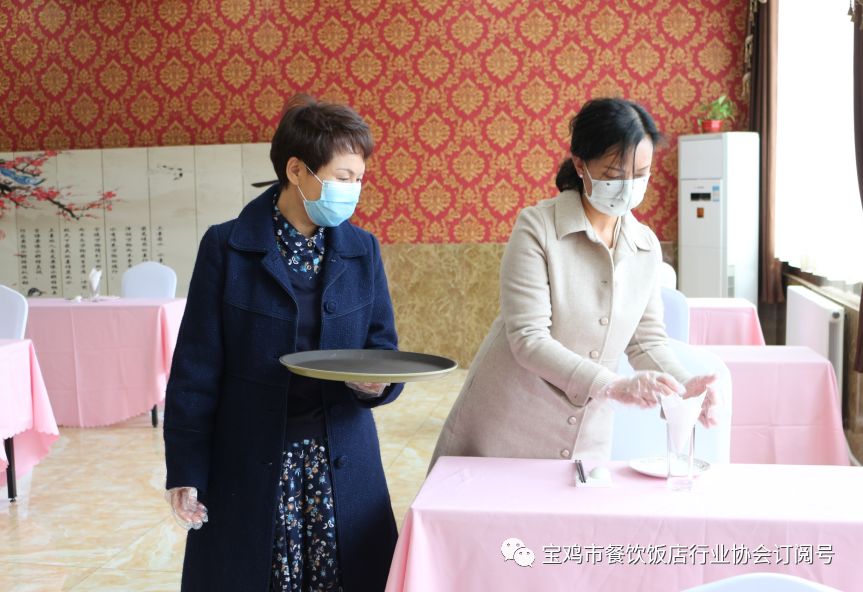 为认真贯彻落实党中央,国务院决策部署及省委、省政府工作要求,统筹做好疫情防控和经济社会发展工作,有序推进企业复工复产,领导干部包抓重点单位。宝鸡市劳动就业服务处举措到位,办法精准可行,给餐饮企业雪中送炭备受感动。随着“复工潮”的来临,社会各界对于餐饮类生活服务业的需求日益增加。3月18日,市劳动就业服务处调研员许大彬带领市餐饮饭店行业协会常务副会长刘柯利、办公室主任姚文芳、会员部部长丁晨、市餐饮行业专家乔丽、胥芳霞一行赴千阳县包抓餐饮企业(千阳宾馆、金华大酒店、千河招待所),针对疫情期间的餐饮饭店复工开展了培训。以严把疫情防控关,结合疫情等级和分区分级精准防控的要求,有序推动餐饮行业安全,及时复工的措施,为疫情期间受损的餐饮行业带来了“及时雨”,餐饮行业人员密集,复工的前提是安全。培训要求继续落实餐饮业从业人员、顾客管理、经营场所、设备管理、采购进货管理等方面规定,坚持防控不放松。尤其在餐饮企业提供堂食服务时,应当遵守严格体温检测、佩戴口罩;严格就餐时间、严控就餐人数、严格就餐间距,大厅就餐间隔不少于1.5米,长条桌同排隔位就座、对面错位就座,圆桌隔位就座且提供公筷公勺;严格通风消毒、严格用餐登记,建立用餐台账,登记每桌客人的相关信息、用餐时间、消毒记录等,做到可追溯;严禁大型聚餐,一律禁止接待任何形式的婚宴、会议、庆典等大型聚餐活动等要求,严格执行食品安全管理制度,安全有序复工复产,营造安全放心消费环境,做了现场示范。