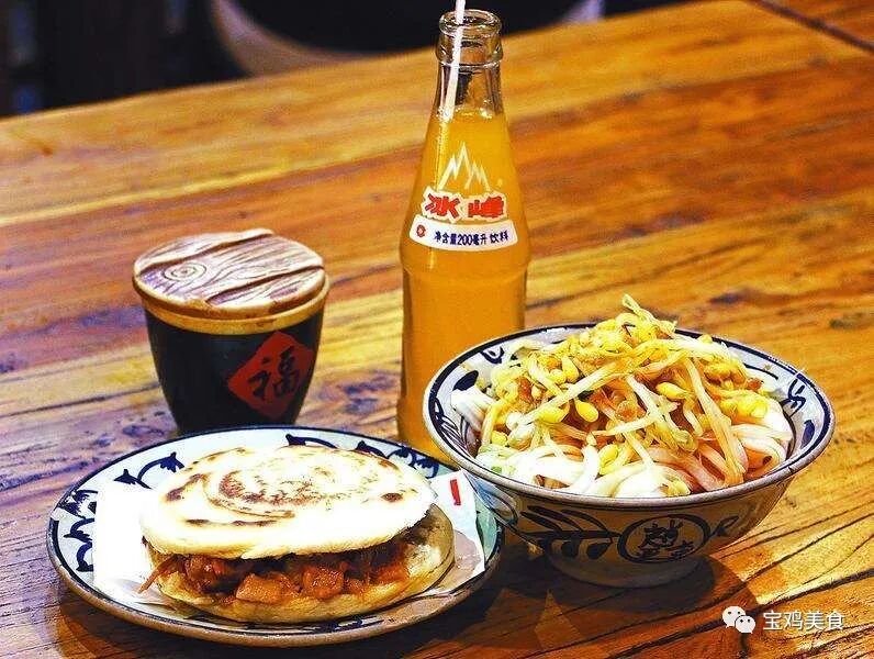 宝鸡擀面皮进入省城西安,不但保持了传统的风味,而且绽放出了更多的精彩。一是创造了风靡一时的“擀面皮夹馍”。刚出炉的热烧饼夹上红艳艳的擀面皮,送给味蕾众多新奇的感受:热烧饼的酥脆,凉面皮的筋弹,味道的香辣酸爽,堪与“肉夹馍”争宠。二是成就了享誉全国的“三秦套餐”:“肉夹馍+擀面皮+冰峰汽水”。冰与火的交融,灵与肉的和谐,秦川美味的浓缩,不可抗拒的诱惑,真是新潮一族的标配!