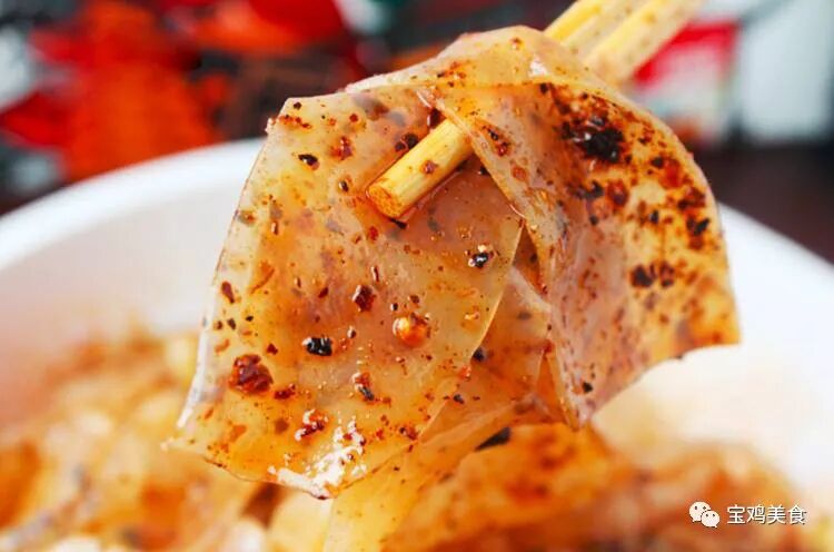 宝鸡面皮过去都是凉吃,现在又有了热吃,如炒面皮、烩面皮等。前不久笔者在市区一个小餐馆见到,中午时分,放了学的小青年走进来,“老板,来一盘炒面皮!”“好咧!”不一会儿,热腾腾的炒面皮就端了上来。小小的一碟面皮,竟有这么多名堂、这么多说道,演绎出这么大的世事,还不神奇吗?