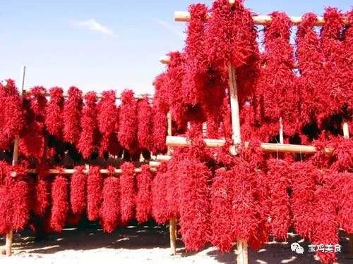 细长的线线辣椒在西府称“秦椒”,今天西府人研发出来“宝椒一号”,这是关中人在食辣道路上永不停息地探索,也体现了秦地人在饮食上对辣之味的精益求精。食辣椒,秦地人不像云贵川人那般豪爽得有些穷凶极恶,也不像湖南江西人炒菜一半辣椒拌。秦地人食辣有分寸,绿椒红椒分得清爽,这脾性也是像极了这线线辣椒,根根分明,鲜食碾面都有讲究。青的绿的鲜辣椒,四季都能切圈用蒜瓣炒着夹馍吃;红透的线椒风干碾成辣椒粉,粗的细的辣椒粉,用热菜籽油泼成油辣子,燣臊子最后一道工序就是加辣椒粉。这样吃,那样吃,餐餐不离辣,这中间的讲究真是不道不明,关于辣椒的事情也是千千万。