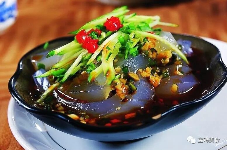 我的故居在三岔河旁的孙家,地处岐山扶风两县交界,一座公路大桥横架三岔河上。东临法门寺镇,南靠青化镇,北依乔山之箭括岭。发源于岭下的三岔河蜿蜒流向扶风东关,谓之七星河。三岔河东岸就是驰名中外的周原遗址核心区,这里的一草一木,一山一水都是值得我们叙写的素材。相传旧时有岐山扶风两人争夸,扶风人夸:“法门有个法门塔,离天只有丈七八”,岐山人也夸到“青化有座玉皇阁,摸到天爷一只脚”。旁观者听罢劝说到,“你们两个甭争咧,青化、法门本是周原一大家。”今天,我就夸一夸这一带曾经流行过的一种特色饮食,那就是濒临失传的扁豆黑软凉粉,它是周原地区饮食文化的一朵奇葩。