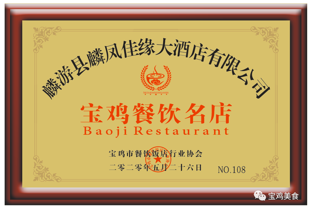 不知不觉,我们来此已经过去了半日。这真是:山中岁月容易过,世上繁华一千年。我们愿麟凤佳缘大酒店能像它的名字一样,麒麟和凤凰义结佳缘,光辉永驻,光华灼灼。2020年5月19日,宝鸡市餐饮饭店行业协会对“麟凤佳缘大酒店”进行“宝鸡餐饮名店”品牌评审认定。